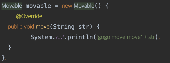 이런식으로 interface에 대한 추상메서드가 한개 존재할때, 해당 식을 람다로 간략하게 표현할 수 있다.