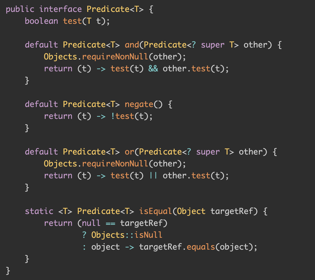 즉, Predicate는, 해당 값에 대한 조건 충족 여부를 리턴하는 것이다.