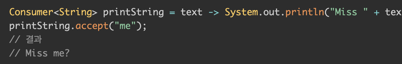 Consumer,accept(T타입 받고 void 리턴)