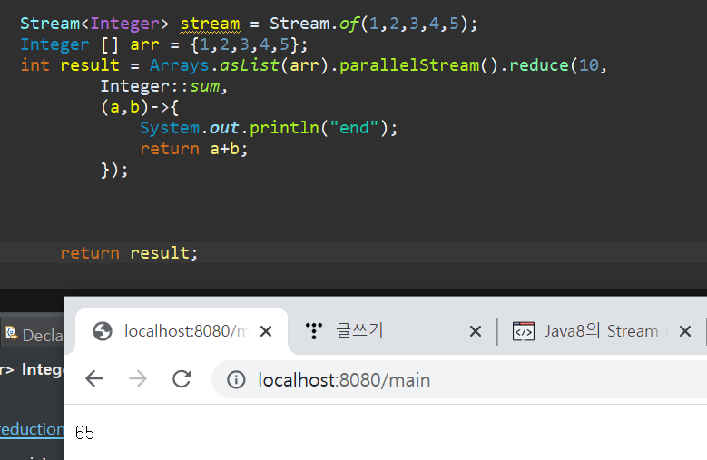 이런식으로 합산이나 매개변수를 넘겨서 처리할수있다. 추가로, 콤비네이터를 넣으면