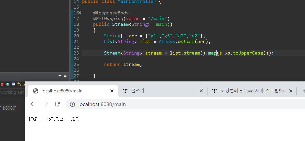 우선, 해당 Stream 객체에 대한 array to Stream 이나 List to Stream은 위와 같다.