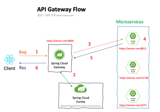 Front에서는 요청을 gateway로만 보내면 되고, gateway포트만 알면 모든 요청을 수행 할 수 있다.