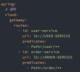 게이트 웨이에서는 유레카 쪽에 등록된 application -name 으로 만 Predicate값을 비교하여