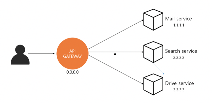 API gateway는 각 서비스를 호출하기 위해, 서비스마다 IP 주소와 포트번호를 알고있어야 한다.
