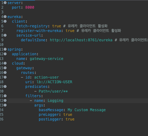 * 라우트 : 라우트는 고유ID, 목적지 URI, 조건지 목록, 필터 목록으로 정의 된다. 모든 조건자가 충족됬을때만 매칭 된다.