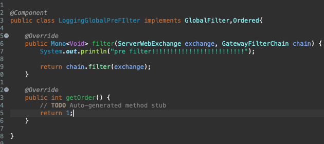 단순히 GlobaFilter에 대한 구현체를 만들고, 빈으로 등록하면, 글로벌 필터로 동작을 한다.