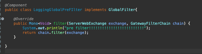 단순 GlobaFilter, log로 찍어야 맞지만, Sl4j에 대한 의존성 주입이 귀찮아서 그냥, 일단 이렇게 테스트