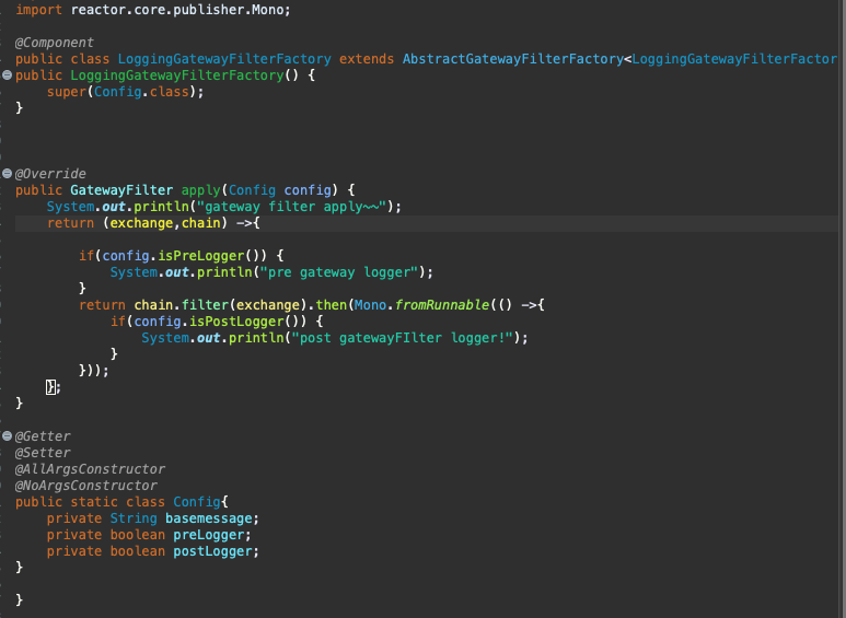 이런식으로 필터 팩토리를 상속받아서 apply메서드를 구현하면된다.
