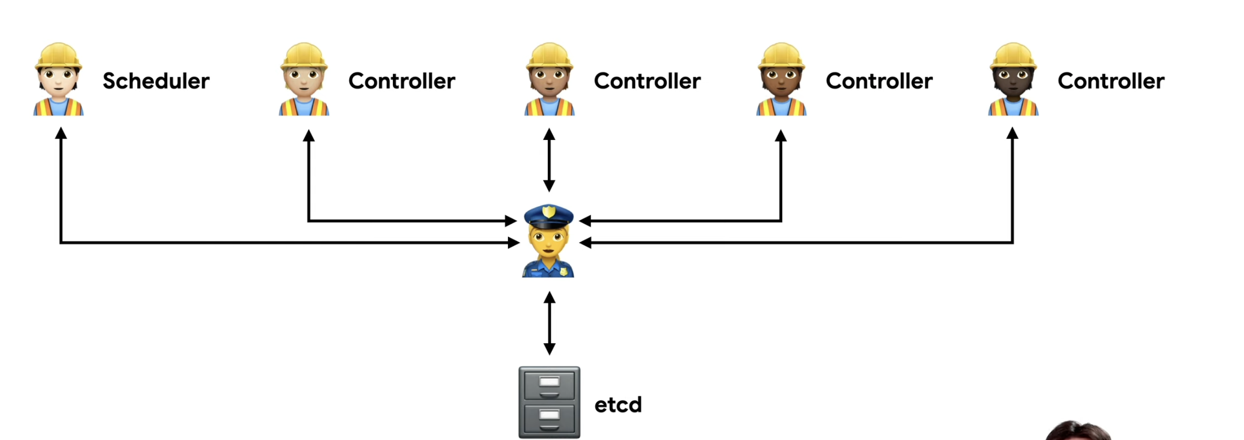 다른 컴포넌트는 api server에게 물어보고, 이 서버가 etcd와 통신해서 응답한다.