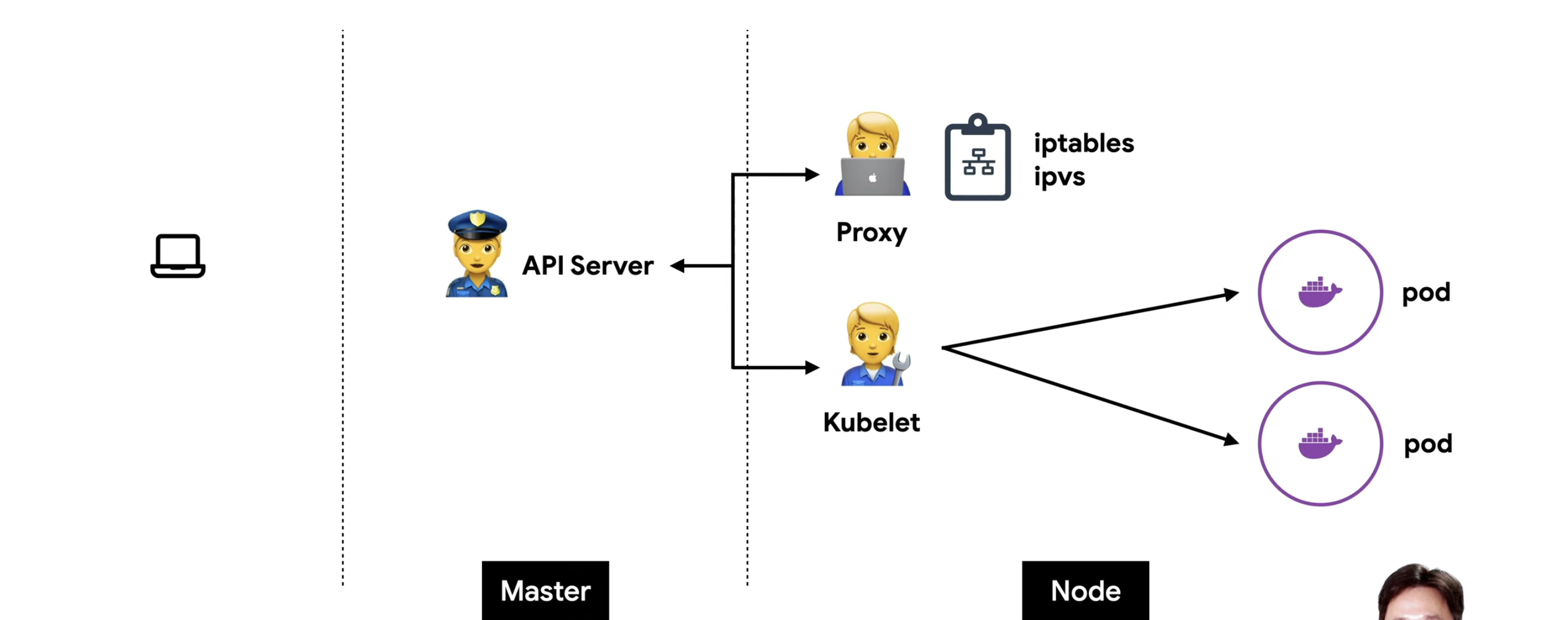 node에는 크게 두가지 모듈이 떠있다. Proxy, Kubelet 이 떠있다.