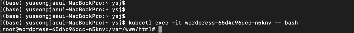 ex. kubectl exec -it [POD_NAME] -- bash