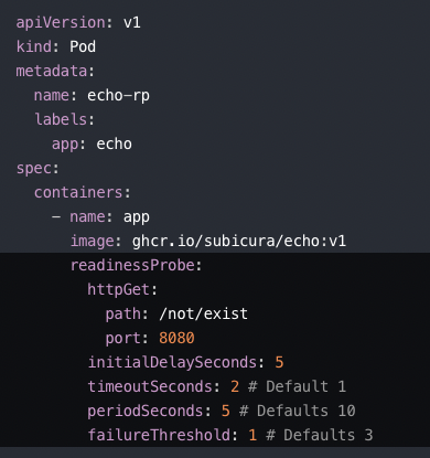 readinessProbe 설정은