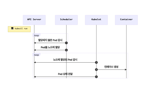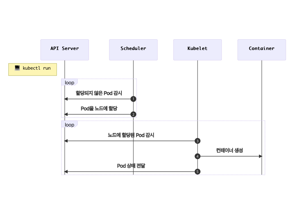 kubectl run을 하게 되면 위와 같은 과정으로 pod이 생성된다