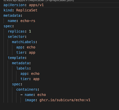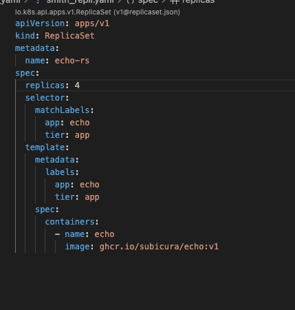 ReplicaSet이고, template은 삭제되어 추가될때 해당 템플릿 기준으로 생성된다는 의미이다.