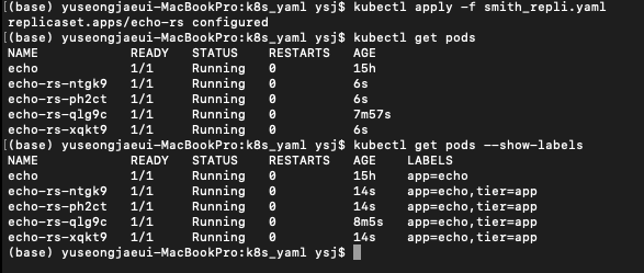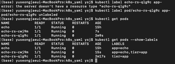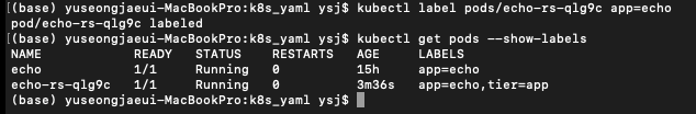 kubectl label name app=echo 이런식으로 하면 라벨에 추가된다.