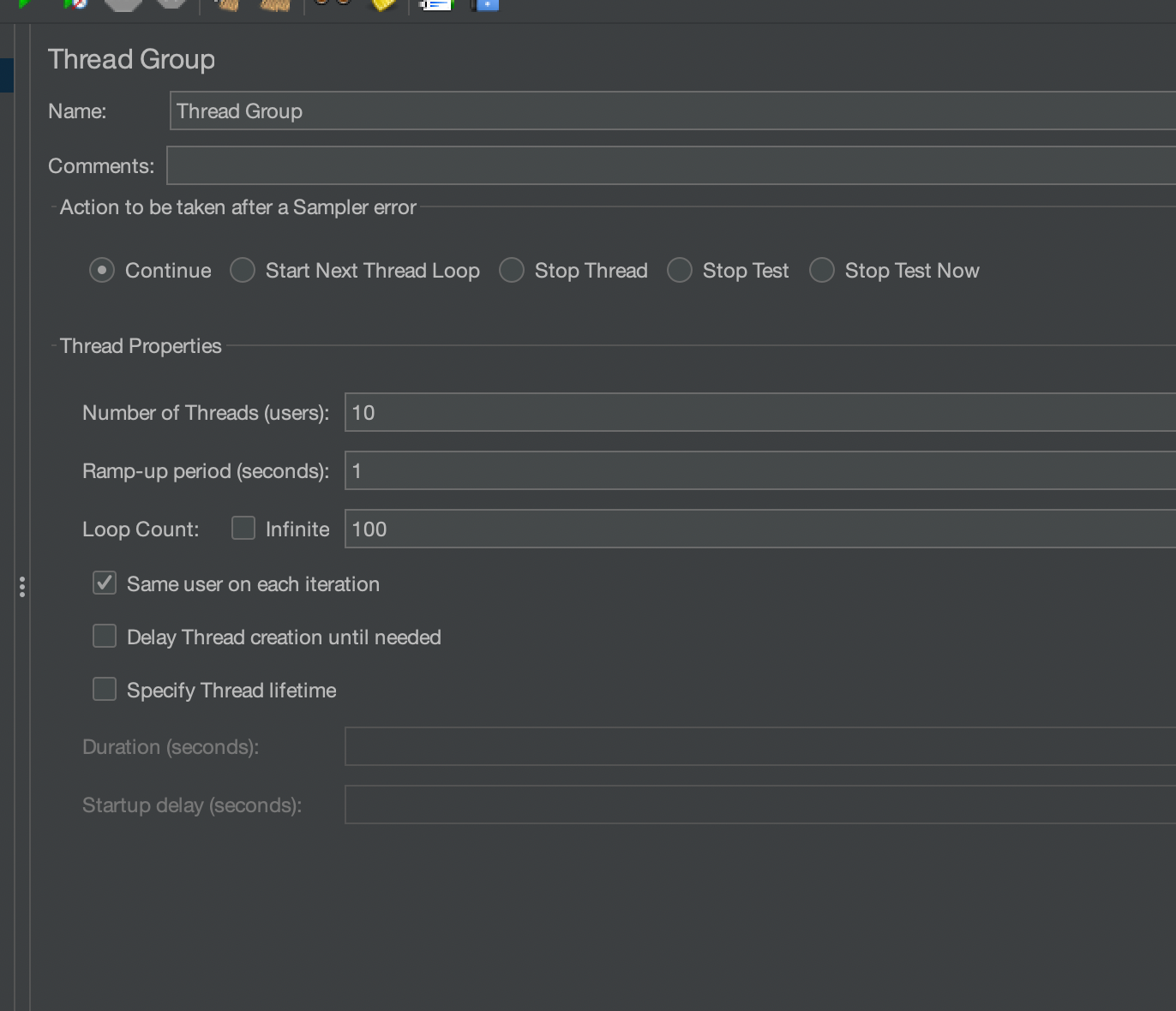 즉 10명의 사용자가 1초에 한번씩 100번반복한다.