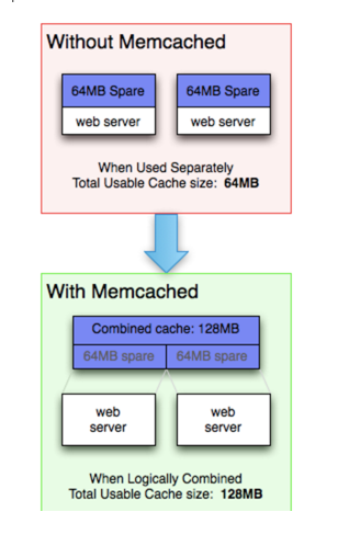 memcache를 사용하는 경우는 논리적 결합으로 인해 각 웹서버는 전체 메모리캐시만큼