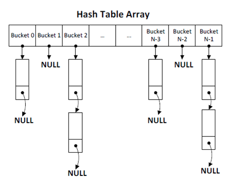 각각의 버킷은 데이터들의 linked-list 형태이다.