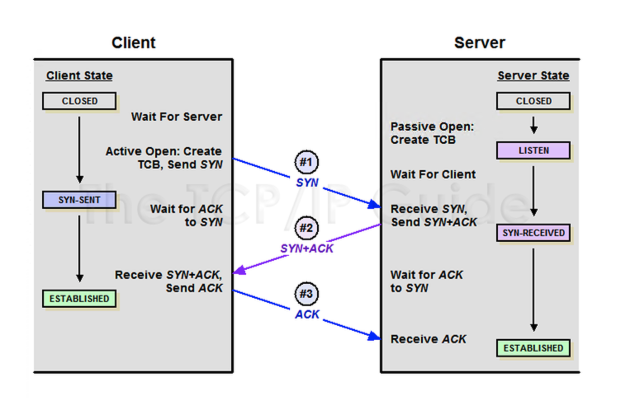 TCP는 장치들 사이에 논리적인 접속 을 성립하기 위해 , three-way handshake를 사용한다.