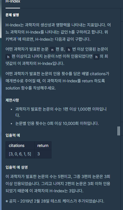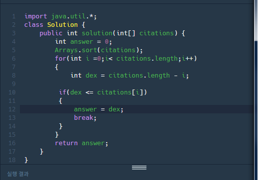 단 , 문제의 index를 한번 sort한거니까, 길이에서 -i를 한값을 answer에 넣어야한다 ㅋ