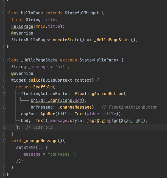 StateFulWidget을 만들어야한다.