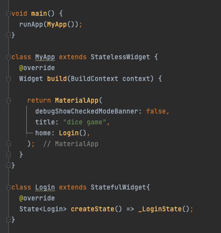 MyApp이라는 class의 내용을 적어놓고, MaterialApp을 return 한다.