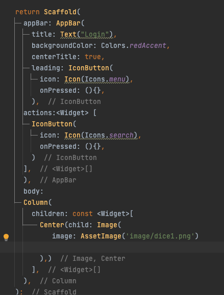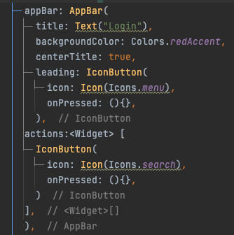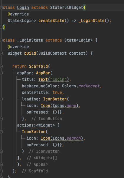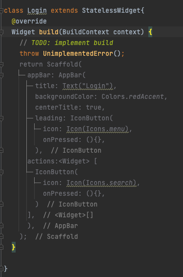 그 Login appbar와 IconButton그리고 해당 하위의 action에 대한 함수 선언까지만 해놓는다.