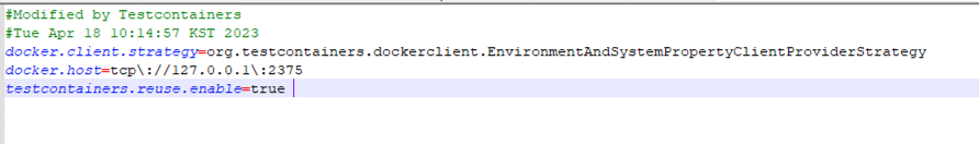 2) Testcontainer 구동시 생성되는 .testcontainer.properties