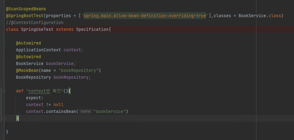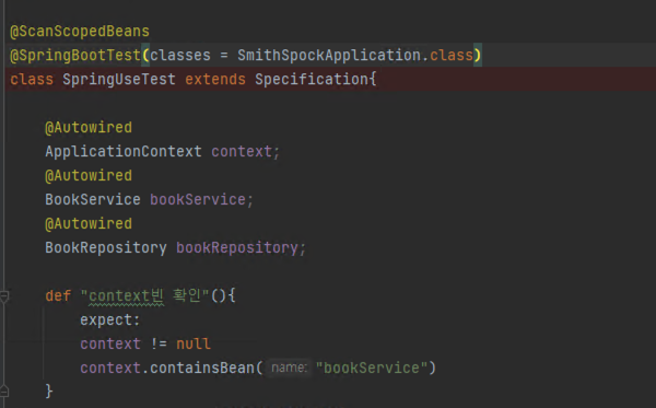 2-1) 컨텍스트에 빈 존재유무 테스트
