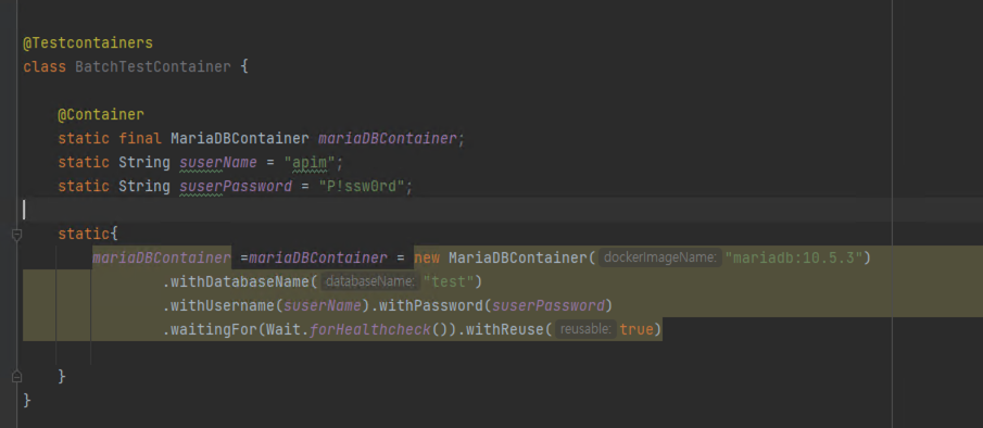 테스트 코드에서 container start를 하거나 각각 선언하게 되면