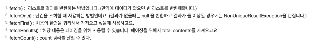 다만 좀 특이한게 fetch가 아니라 fetchResult로 사용할 수 있다.