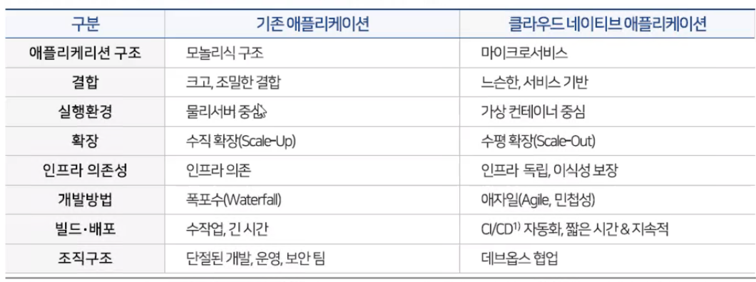 기존 애플리케이션과 클라우드 네이티브 애플리케이션과의 차이는 대략적으로 이렇다.