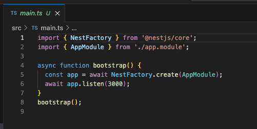 main.ts에서 AppModule로 NestFactory를 생성하고,