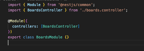 우선 NestJS모듈은, @Module () 데코레이터로 주석이 달린 클래스이다.