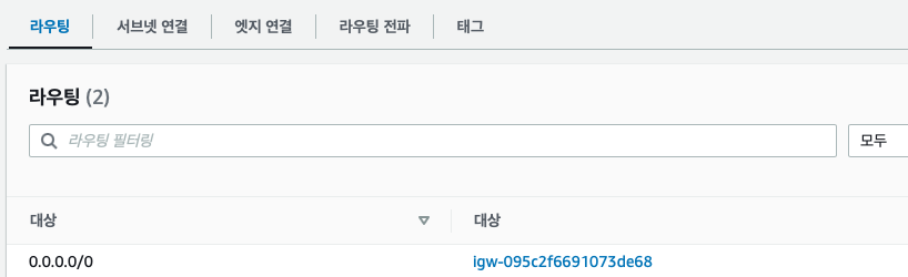 VPC > 라우팅 테이블 > 라우팅 목록 중 0.0.0.0이 있는 대상이 있다.