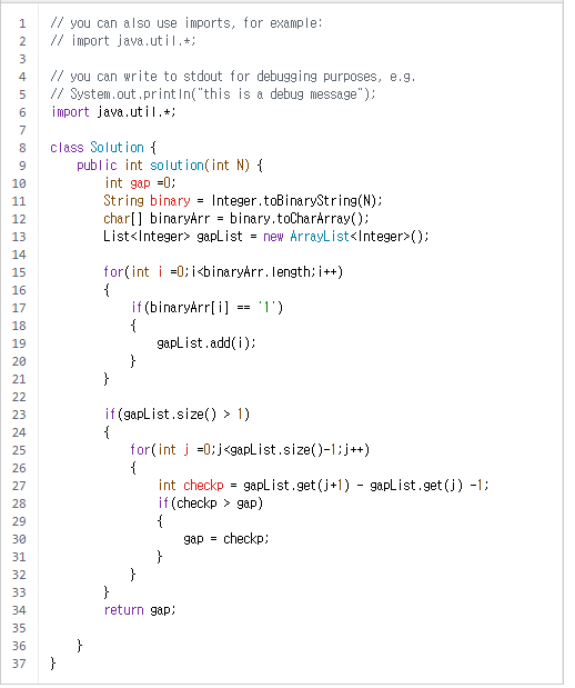 쉽게말해서, 2진수로 변환하고, 해당 1간의 간격의 최대값을 구하는게 키포인트이다.