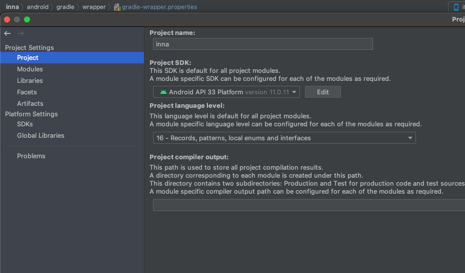 2. File > project Structure > project settings 아래와 같이 맞추기