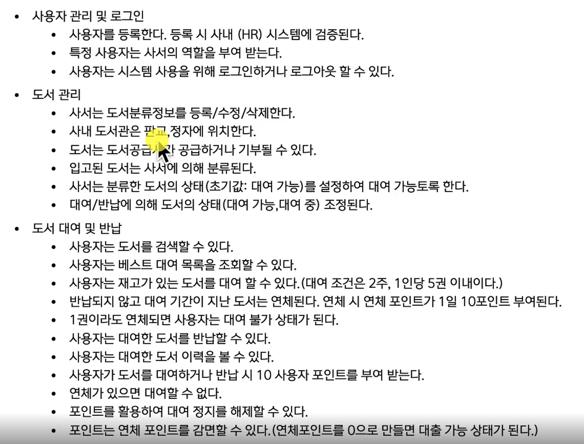 사내 도서대여시스템 이라고 가정하고 모델링 실습을 해보자