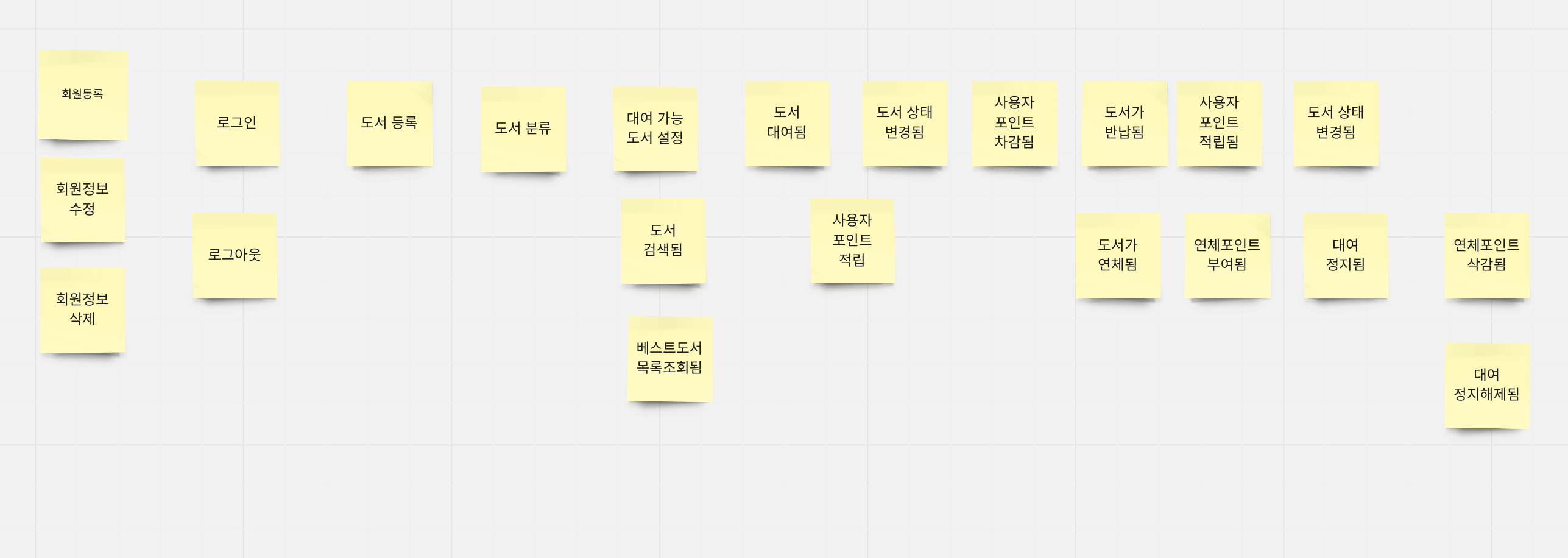설계 내용은 아래와 같다. 우선 이벤트 스토밍은 발생할 수 있는 이벤트들을 스토밍 하는 단계이므로