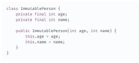 불변은 단순 클래스 안에 생성자만 있고, 그 클래스 안에 변수들이 final로 정의 되어, class에 대한 값을