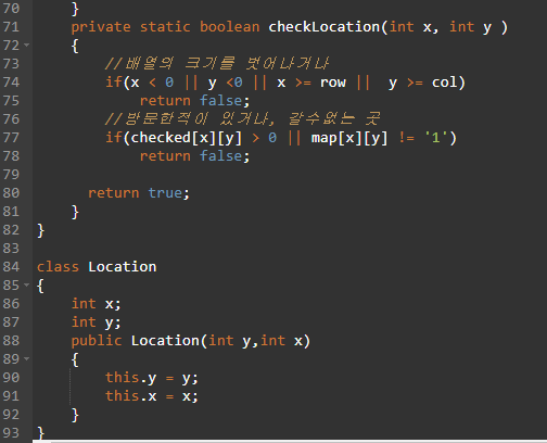 map과 동일하게 checked 에 대한 2차원 배열 을 선언하고, 거기에 몇번째 방문인지 값을 넣는다.