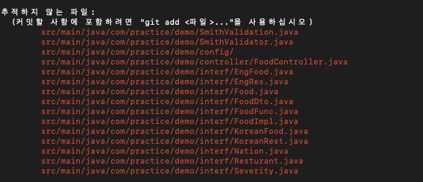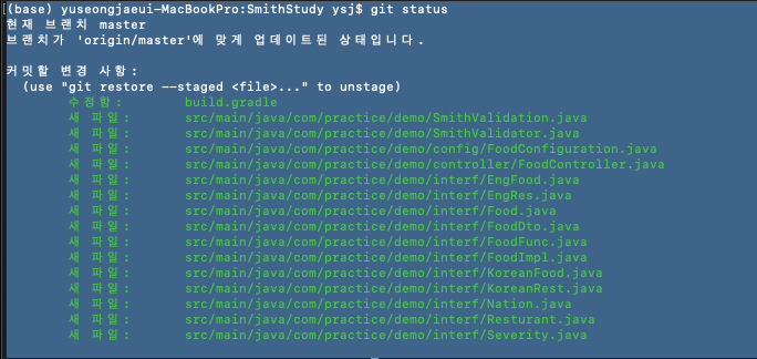 원복 한뒤 git status 를 하면 아래와 같이 나옵니다.