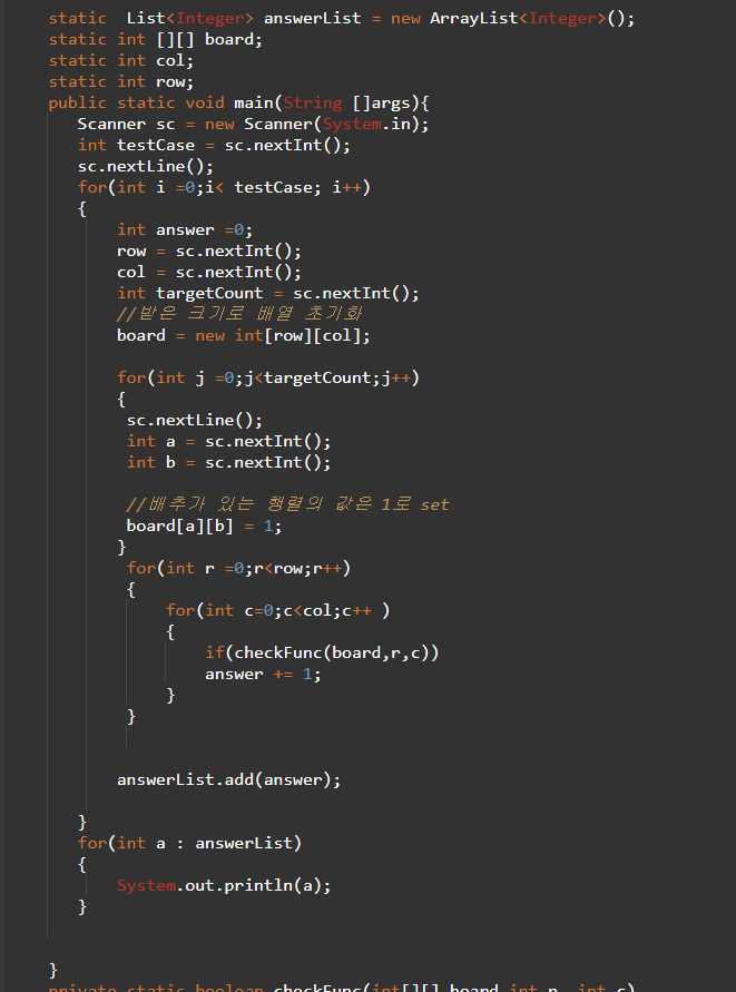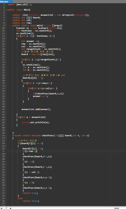 true로 리턴해준다. 재귀로 하게 되면 계속 계속 근처있는 값들도 true로 리턴하게 될테니 다 바뀌고 true로 리턴되면 메인에서 add해주고 총 count 를 0으로 초기화해준다.