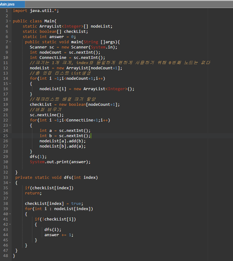 이제, 재귀함수를 쓰는 dfs에, 초기 index값을 넣어서 실행하면 끝이난다.