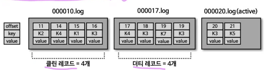 이렇게 됬을떄, min.cleanable.dirty.ratio의 설정값 기준으로, 더티 레코드의 특정 기준이 넘어가면