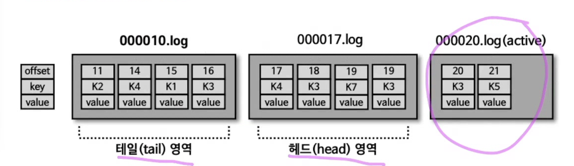 카프카에서 데이터는 세그먼트 단위로 삭제가 발생하기 때문에 로그단위로는 개별 삭제가 불가능하다.