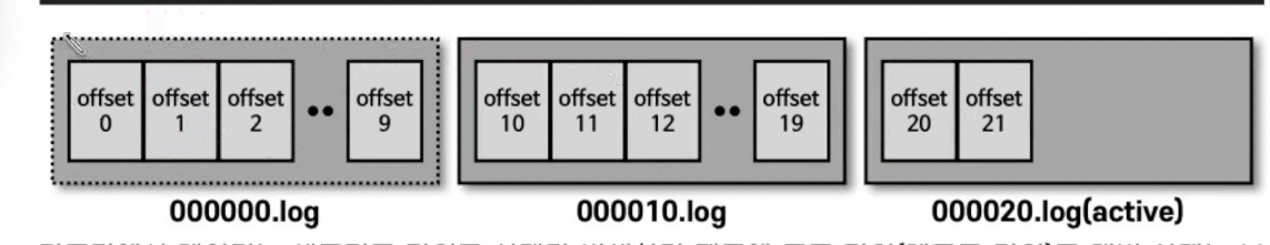 log.retention.check.interval.ms에 설정한 값에 따라, 세그먼트가 삭제 영역에 들어왔는지 확인 한다.
