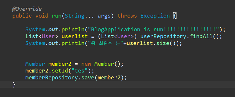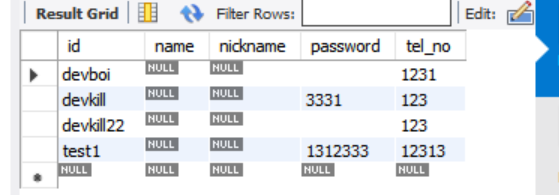 물론 말도안되긴하지만, 테스트용으로, app이 구동될때, tes라는 사용자를 가져와서, nickname을