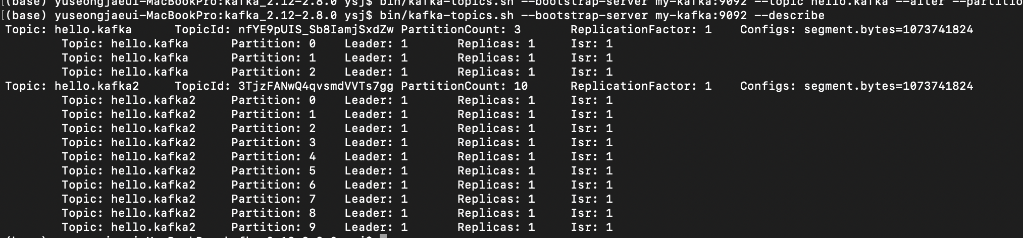 bin/kafka-topics.sh --bootstrap-server my-kafka:9092 --topic hello.kafka --alter --partitions 3
