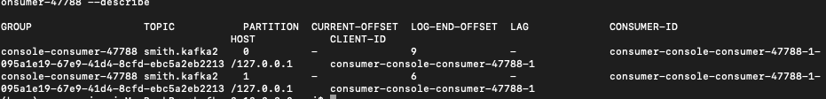 bin/kafka-consumer-groups.sh --bootstrap-server my-kafka:9092 --group console-consumer-47788 --describe